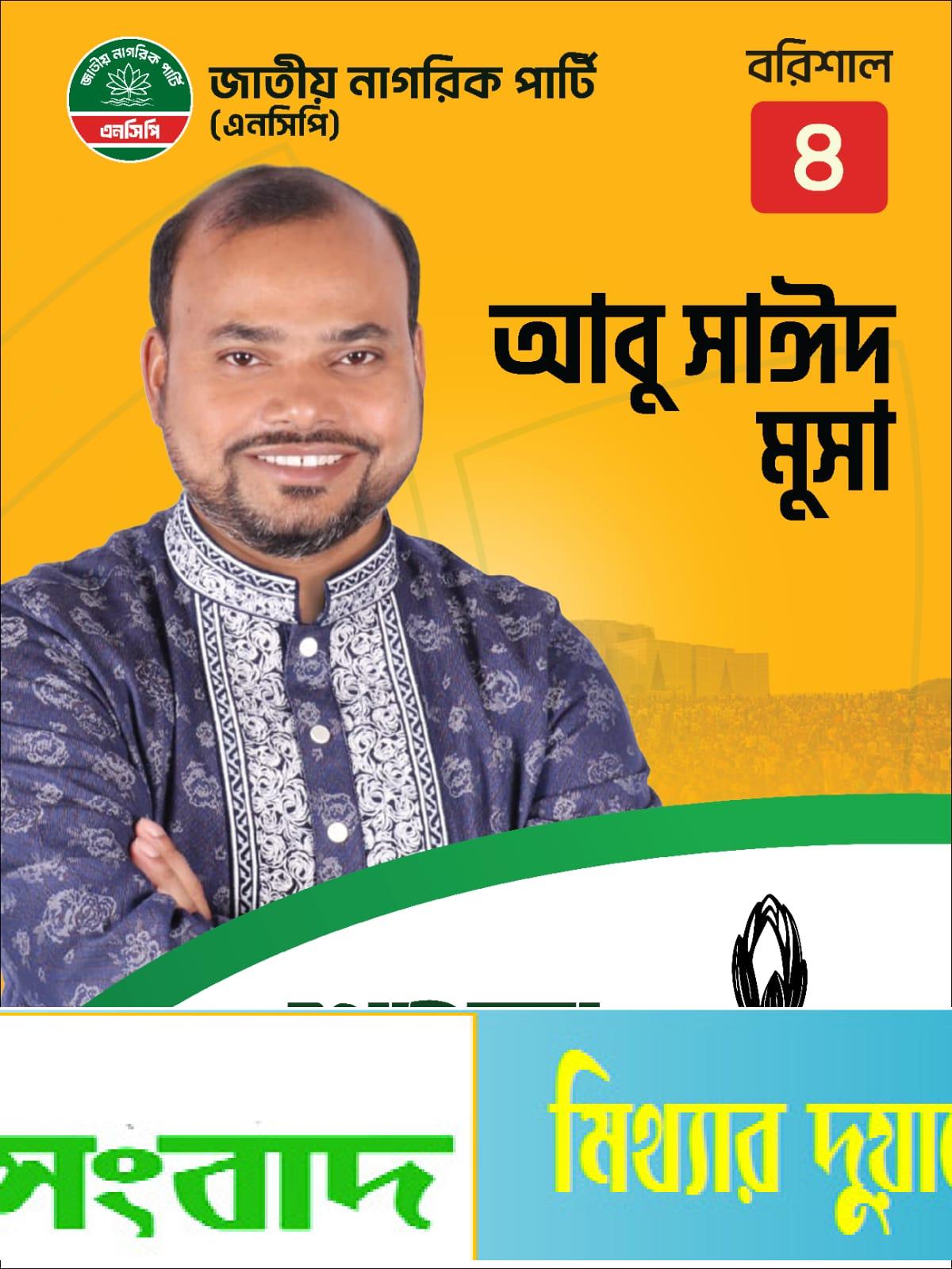 বরিশাল-৪/ এনসিপির মনোনয়ন পেলেন মো. আবু সাঈদ মুসা