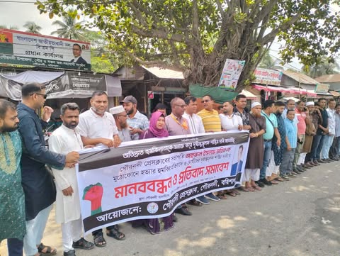 গৌরনদী প্রতিনিধি // তথ্যমন্ত্রীর নিজ নির্বাচনী এলাকা বরিশালের গৌরনদী প্রেসক্লাবের সভাপতি ও সিনিয়র সাংবাদিক জহুরুল ইসলাম জহিরকে মোবাইল ফোনে হত্যার হুমকির প্রতিবাদে মানববন্ধন ও প্রতিবাদ সমাবেশ অনুষ্ঠিত হয়েছে। শুক্রবার (১৭ এপ্রিল) বেলা ১১ টায় ঢাকা-বরিশাল মহাসড়কের গৌরনদী বাসস্ট্যান্ড এলাকায় গৌরনদী প্রেসক্লাবের আয়োজনে এ কর্মসূচি পালিত হয়।